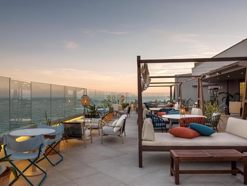 Það er einnig bar til staðar og sumarverönd með útsýni yfir sjóinn og göngusvæðið.