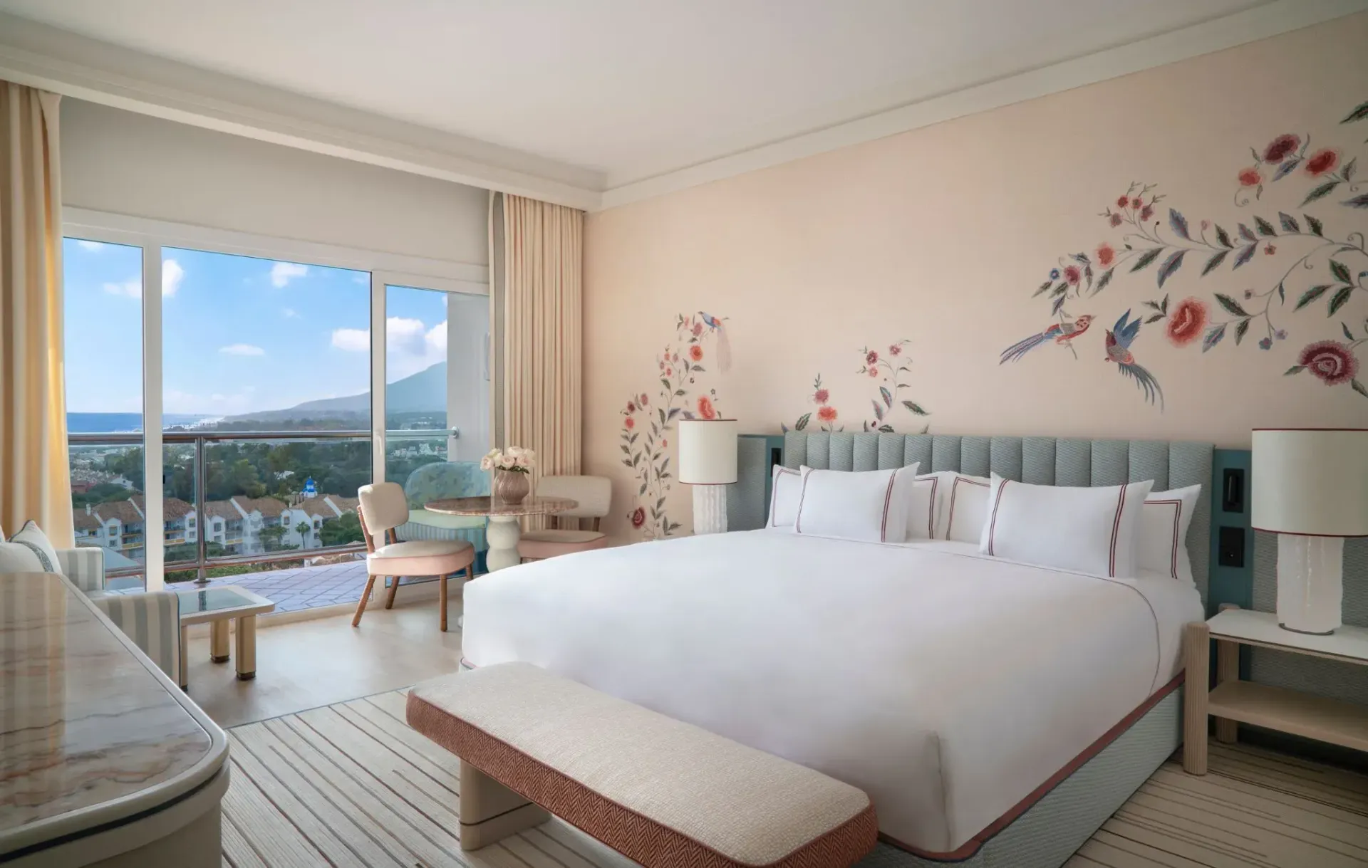 Don Carlos Marbella er glæsilegur lúxusdvalarstaður í hjarta Elviria, umlukinn 20.000 m² af suðrænum görðum sem opnast beint út á mjúka sandströnd Miðjarðarhafsins. Hér finnur þú einkastrandklúbb með VIP-þjónustu, rúmgóð sólsvæði og margar sundlaugar og hengirúm fyrir þægilega slökun frá morgni til kvölds.