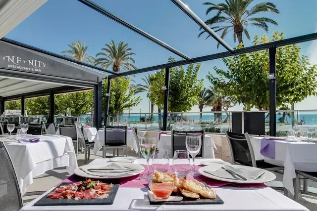 Veitingastaður hótelsins, Infinity Restaurant, býður upp á Miðjarðarhafsrétti við hliðina á sundlauginni.